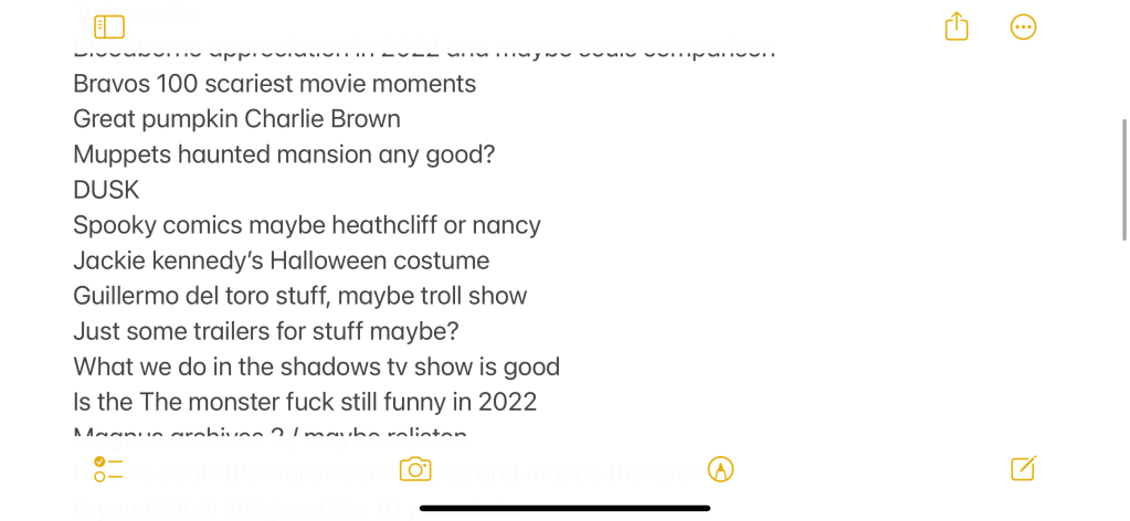 Here’s a sneak preview of a very long notes app where I’ve been collecting ideas for the new Getting Spooky post for like two months.